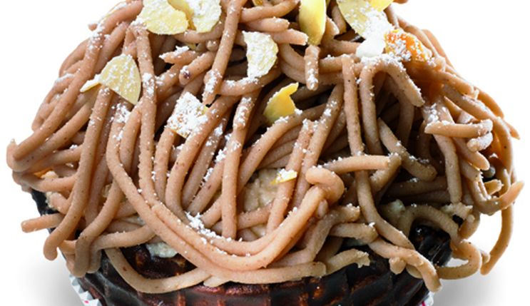 Feine Maronicreme und -püree in einer knusprigen Schoko-Hippenschale.