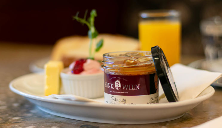 For example, enjoy a glass of paté from "Hink Wien", a deer schnitzel or curd dumplings with wild berry roaster.